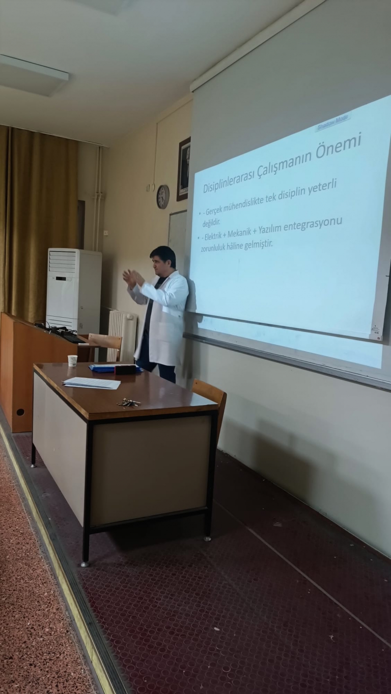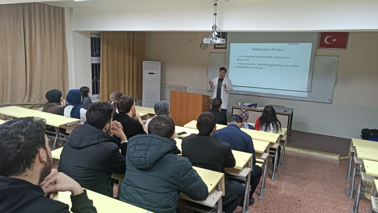 Bölümümüz Bitirme Projesi Komisyonu tarafından düzenlenen “Disiplinler Arası Çalışma Proje Atölyesi” 26 Kasım 2025 tarihinde başarıyla gerçekleştirildi. ED-4 dersliğinde başlayan programda, mühendislikte disiplinler arası iş birliğinin artık bir tercih değil, zorunluluk hâline geldiği güncel örneklerle ele alındı.
