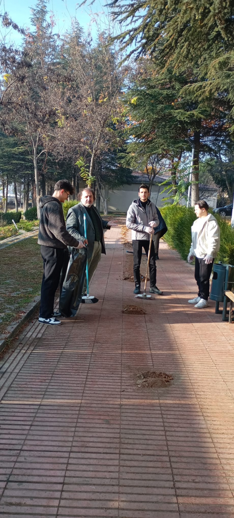 İŞKUR kapsamında bölümümüzde görevlendirilen öğrencilerin gönüllü katılımıyla, bölüm çevresinin temizliğine yönelik bir sosyal sorumluluk etkinliği gerçekleştirilmiştir. Etkinlik kapsamında öğrenciler, ortak yaşam alanlarının temizliği ve çevre bilincinin geliştirilmesi amacıyla koordineli bir şekilde çalışmış; bu süreç, öğrenciler arasında dayanışma ve sorumluluk duygusunun pekişmesine katkı sağlamıştır. Çevre temizliği faaliyetinin ardından, katılımcı öğrencilerle birlikte düzenlenen kahvaltı etkinliği ile sosyal etkileşim artırılmış, yapılan çalışmanın ardından öğrencilerin motivasyonu ve aidiyet duygusu desteklenmiştir.