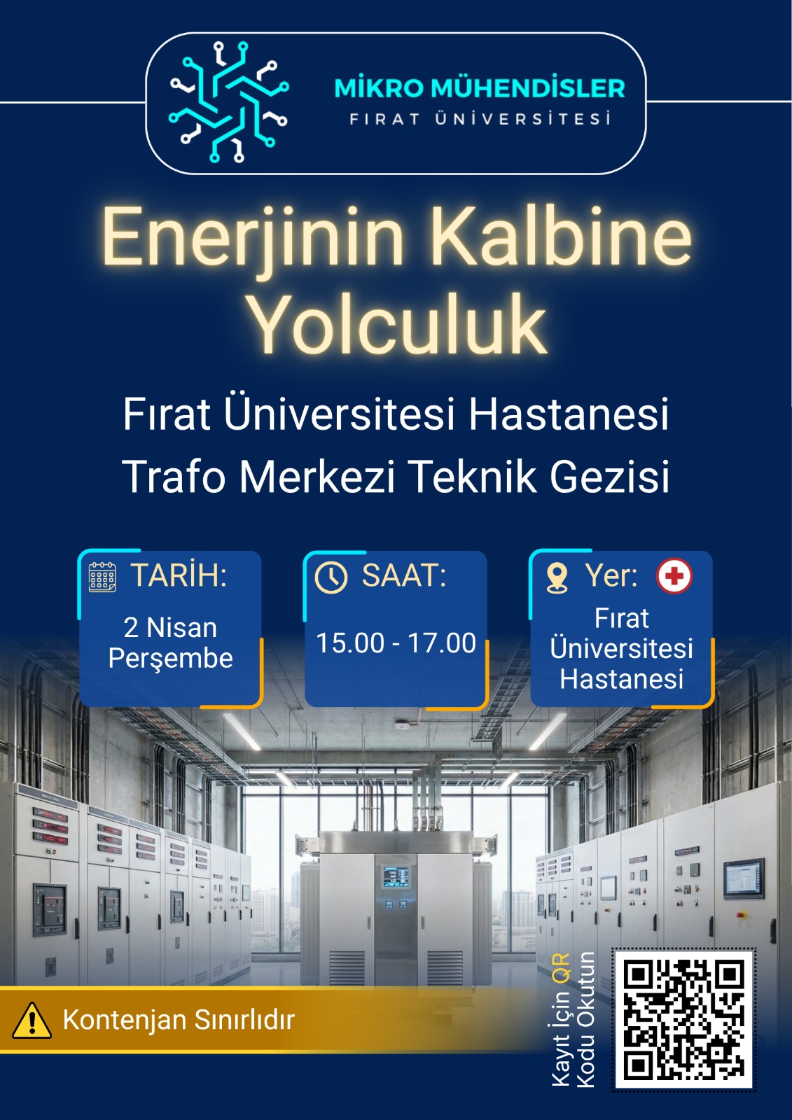 Teorik derslerde devre şemalarında gördüğümüz o devasa güç sistemlerini, trafoları ve jeneratörleri yerinde incelemeye hazır mısınız? Mikro Mühendisler olarak, Fırat Üniversitesi Araştırma Hastanesi’nin enerji mutfağına, yani Trafo Merkezi’ne çıkarma yapıyoruz!